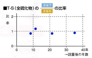 設置後、数十年を経ている既存浮体構造物を調査した結果、浮体外と浮体下で底質に顕著な差は認められませんでした。